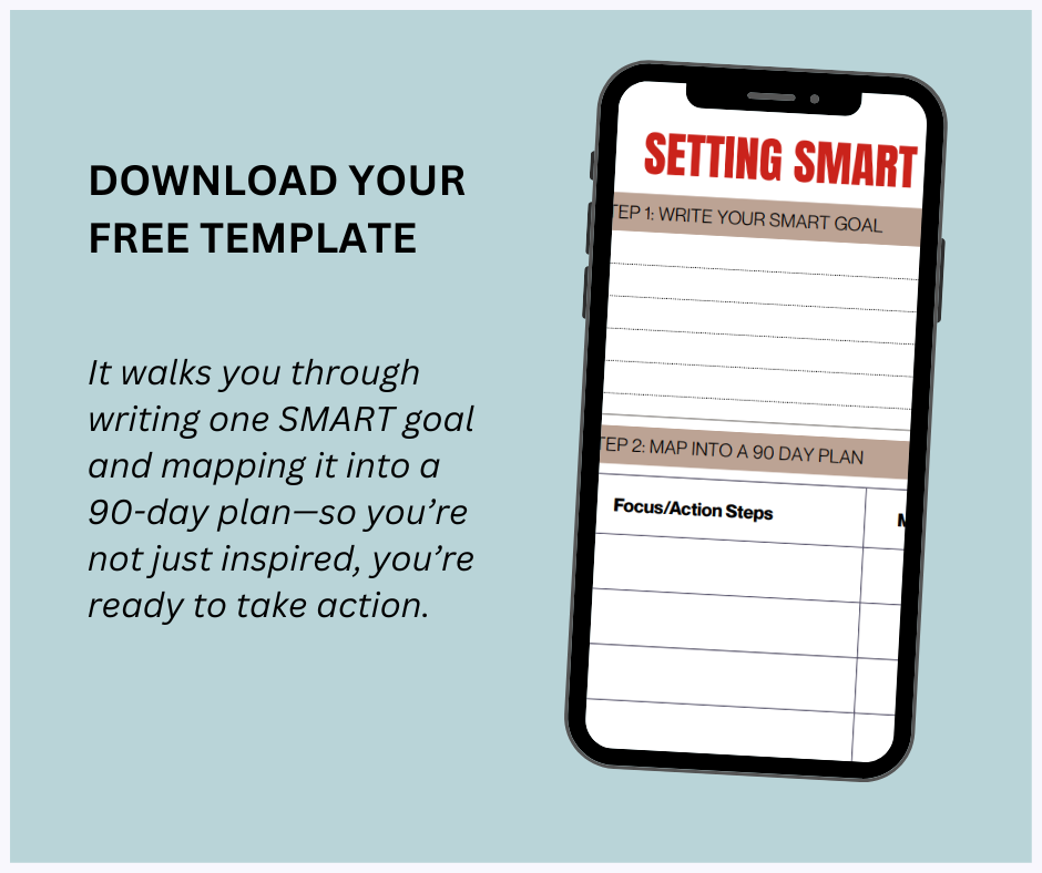 To make this even easier, we created a free SMART + 90-Day Goal Worksheet you can download today. It walks you through writing one SMART goal and mapping it into a 90-day plan—so you’re not just inspired, you’re ready to take action.